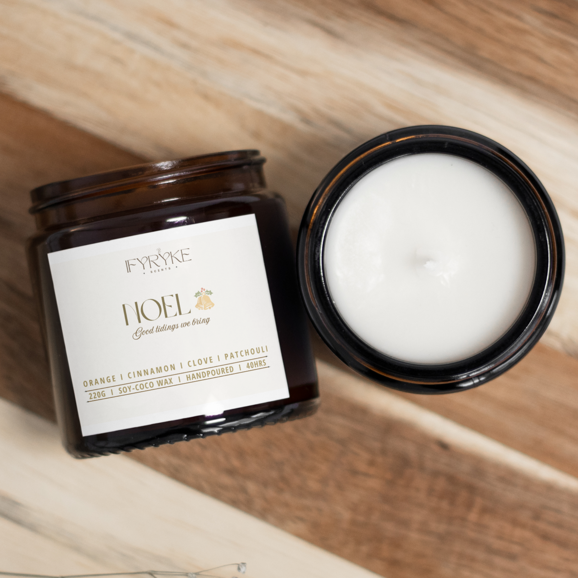 Bright orange and mandarin top notes open with a burst of festive freshness, giving way to a comforting heart of cinnamon, clove, nutmeg, and a gentle touch of rose. Deep, rich base notes of spices and patchouli settle into a luxurious, long-lasting aroma that fills your home with Christmas cheer.